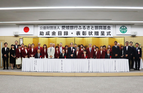 公益財団法人愛媛銀行ふるさと振興基金は、愛媛銀行の創立40周年を記念して1983年に設立し、愛媛県内における産業経済の発展に寄与する産業活動又は文化活動に対して、顕彰事業及び助成事業を行うことで、ふるさとの振興に寄与してまいりました。